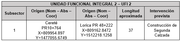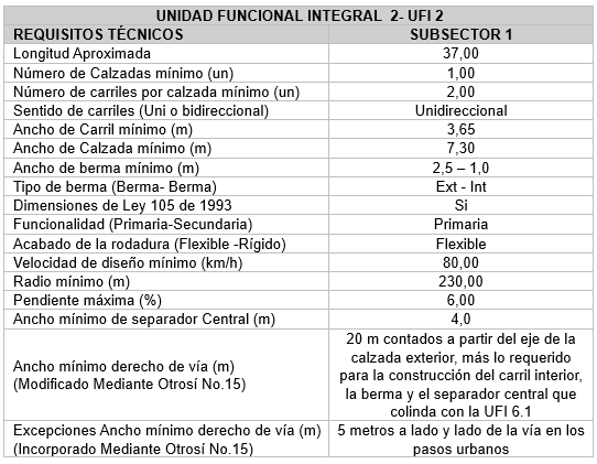 Unidad Funcional Integral 2 Inicio Quienes Somos Proyecto Información de Avance Unidad Funcional Integral 1 Unidad Funcional Integral 2 Unidad Funcional Integral 3 Unidad Funcional Integral 4 Unidad Funcional Integral 5 Unidad Funcional Integral 6 Unidad Funcional Integral 7 Unidad Funcional Integral 8 Proyecto de Concesión Documentación Documentos Públicos Acceso Restringido Contacto X Unidad Funcional Integral (UFI) 2: Cereté – Lorica Descripción de la Unidad Funcional Integral 2 Apéndice 1 Alcance del Proyecto La Unidad Funcional tiene las siguientes características geométricas y requisitos técnicos: Características Geométricas y Técnicas UFI 2 Apéndice 1 Alcance del Proyecto – Modificaciones Otrosíes No. 10 y 15 Otros Requerimientos Técnicos Unidad Funcional 2 Apéndice 1 Alcance del Proyecto